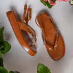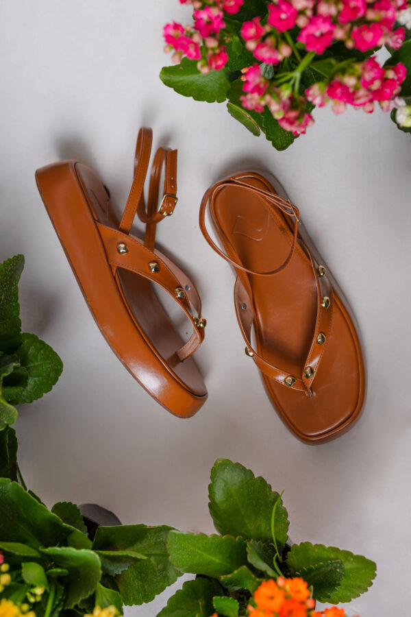 Sandália Papete em couro legítimo, com detalhes dourados presos por tachas. Confeccionados para VIVAGUI.