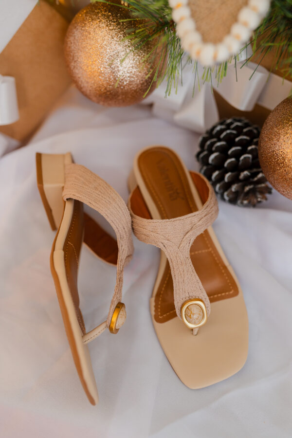 Tamanco VALENTINA off white salto bloco baixo detalhe dourado na parte de cima