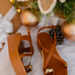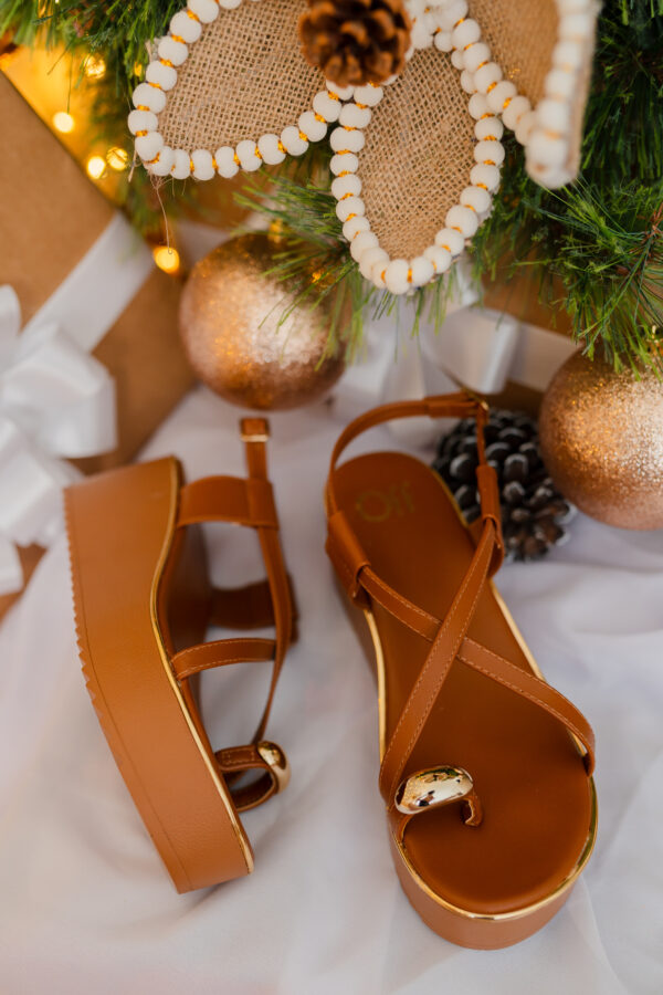 Sandália flat OFFLINE caramelo fecho ajustável detalhe toe ring